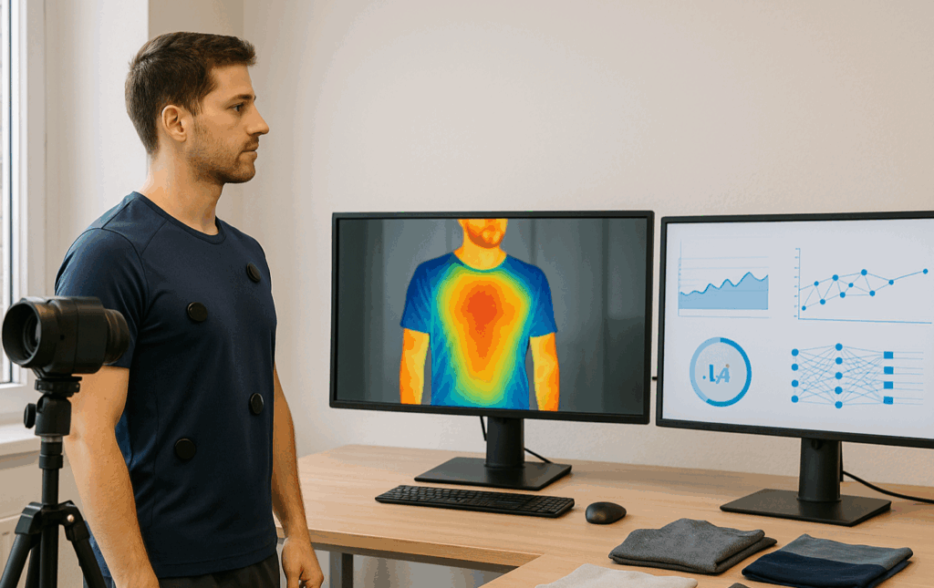 ComforTex-AI kombiniert KI, Sensortechnologie und thermografische Verfahren, um objektive, präzise und effiziente Aussagen über den Tragekomfort zu ermöglichen.